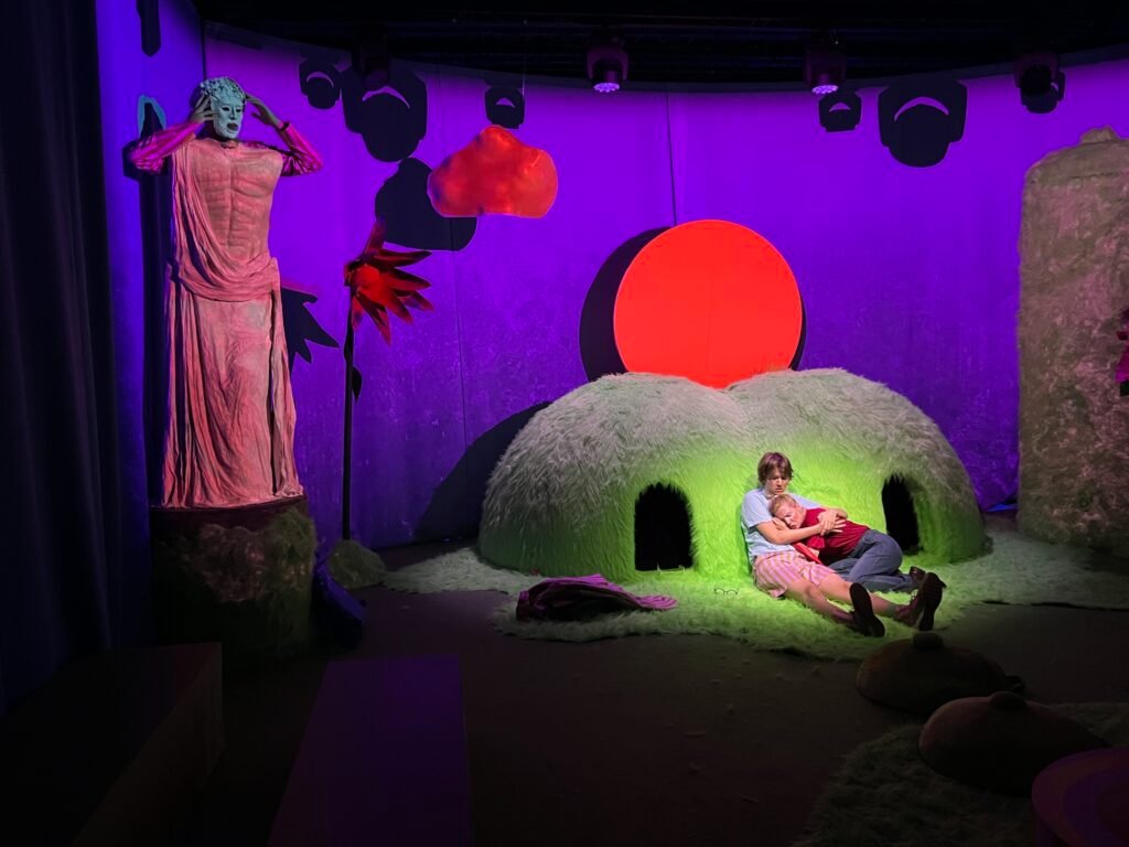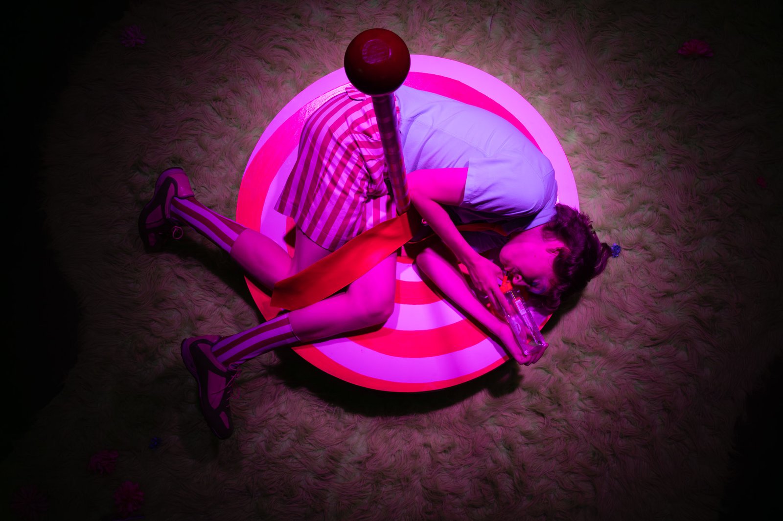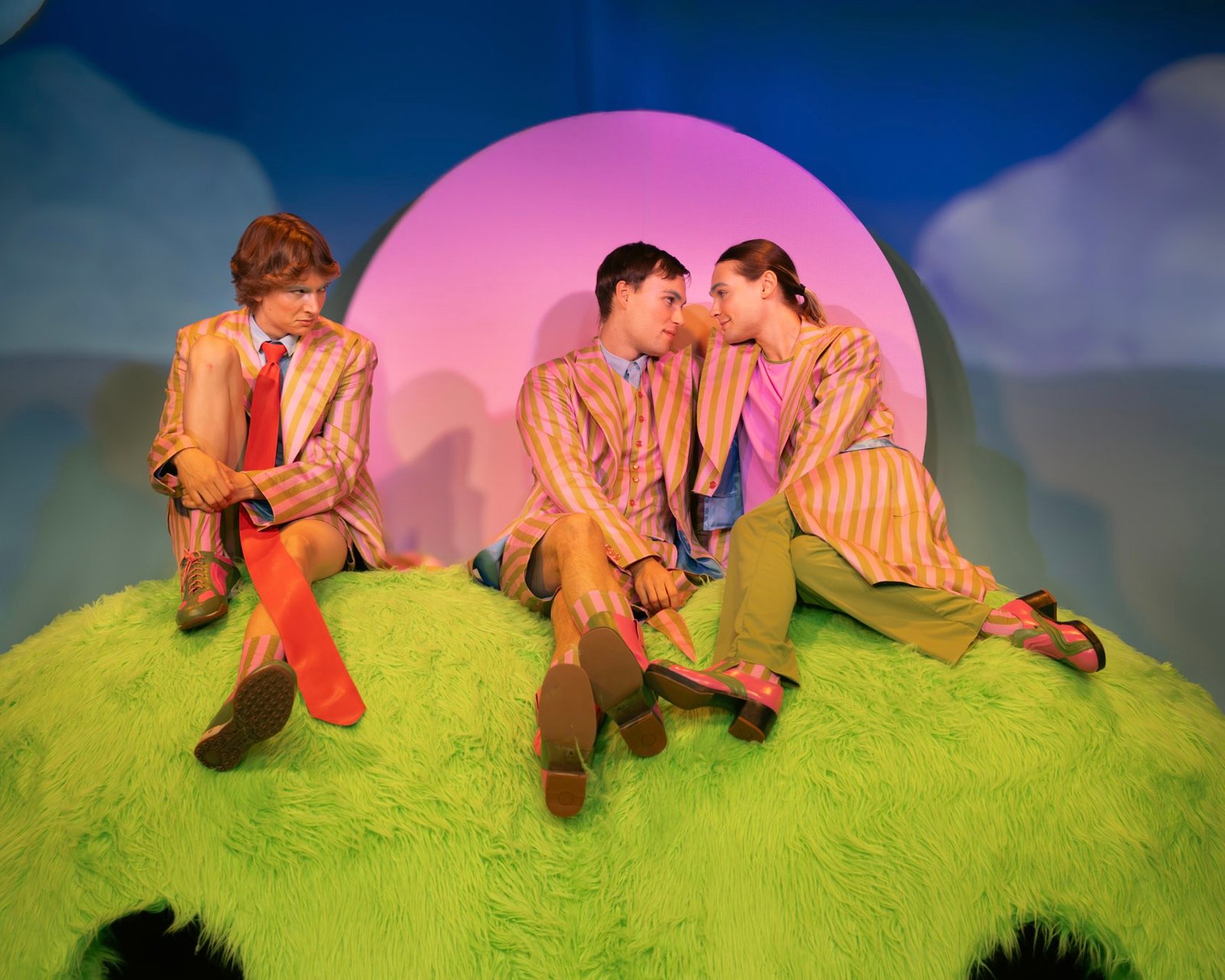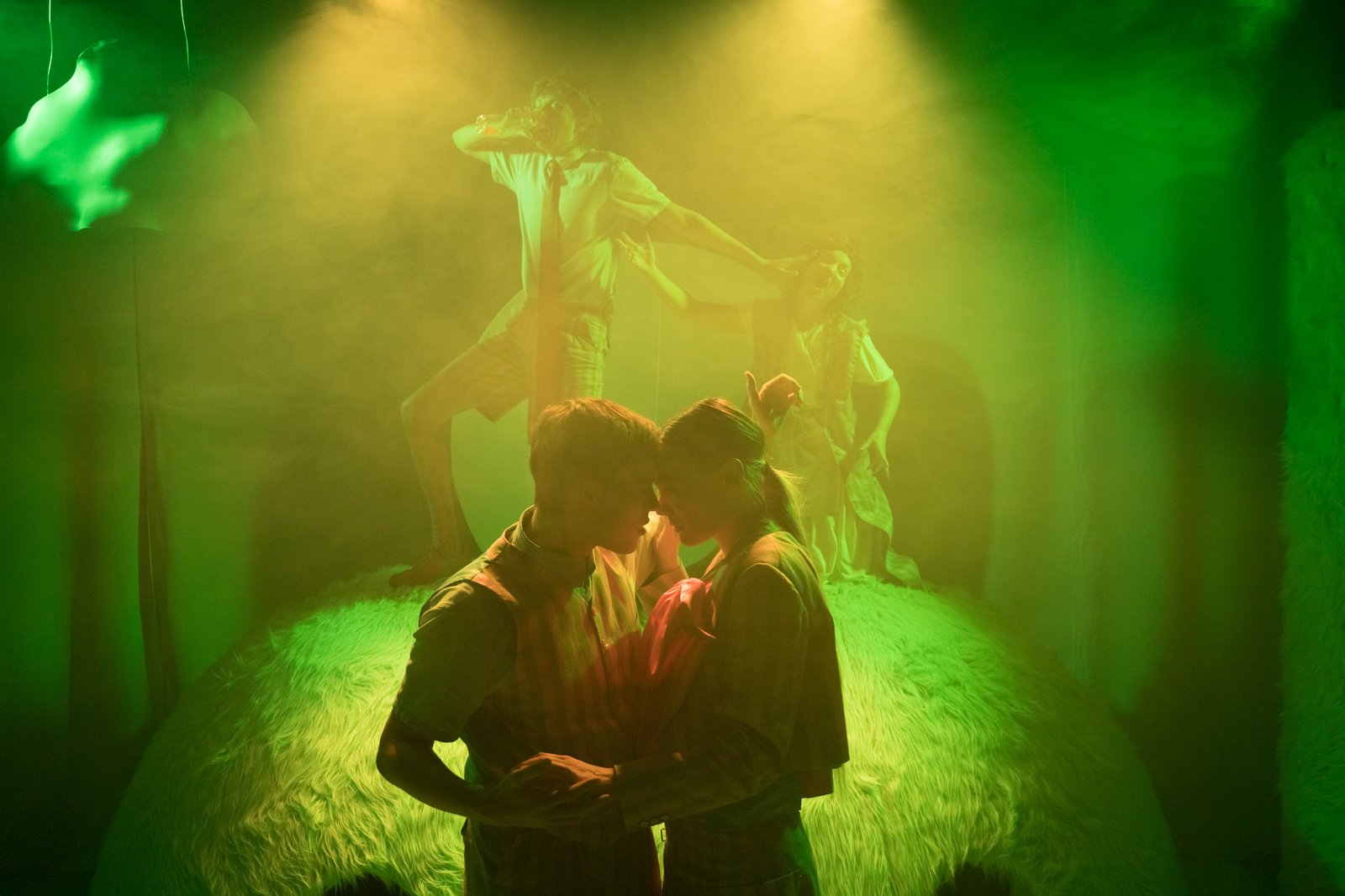 At: Dalateatern Text: Lovisa OnnermarkDirector: Nina Rudawski Scenography & Costume Design Toni Tora Botwid Light- and video design : Casper Wijlhuizen Sound design: Maria Bergström Make up-& wig design: Lina Nyberg On Stage: Elias Elling, Oliver Andersson, Jesper Berg, Anna Granquist, Alma Alfsdotter (Praktik från teaterhögskolan Malmö) Foto: Simon Öster